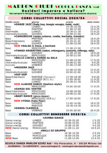 Orario dei nostri corsi di danza